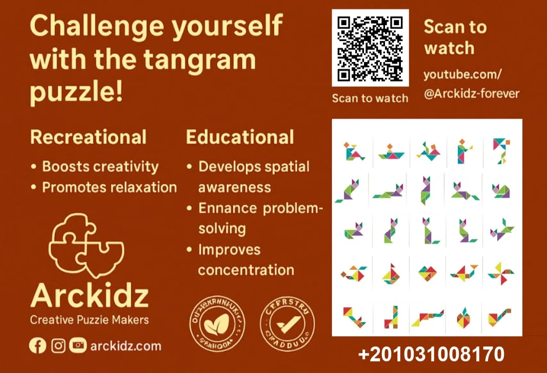 لو بتحب الألعاب الإبداعية والتحديات، يبقى بازل التانجرام الخشبي من Arckidz هو الاختيار المثالي.