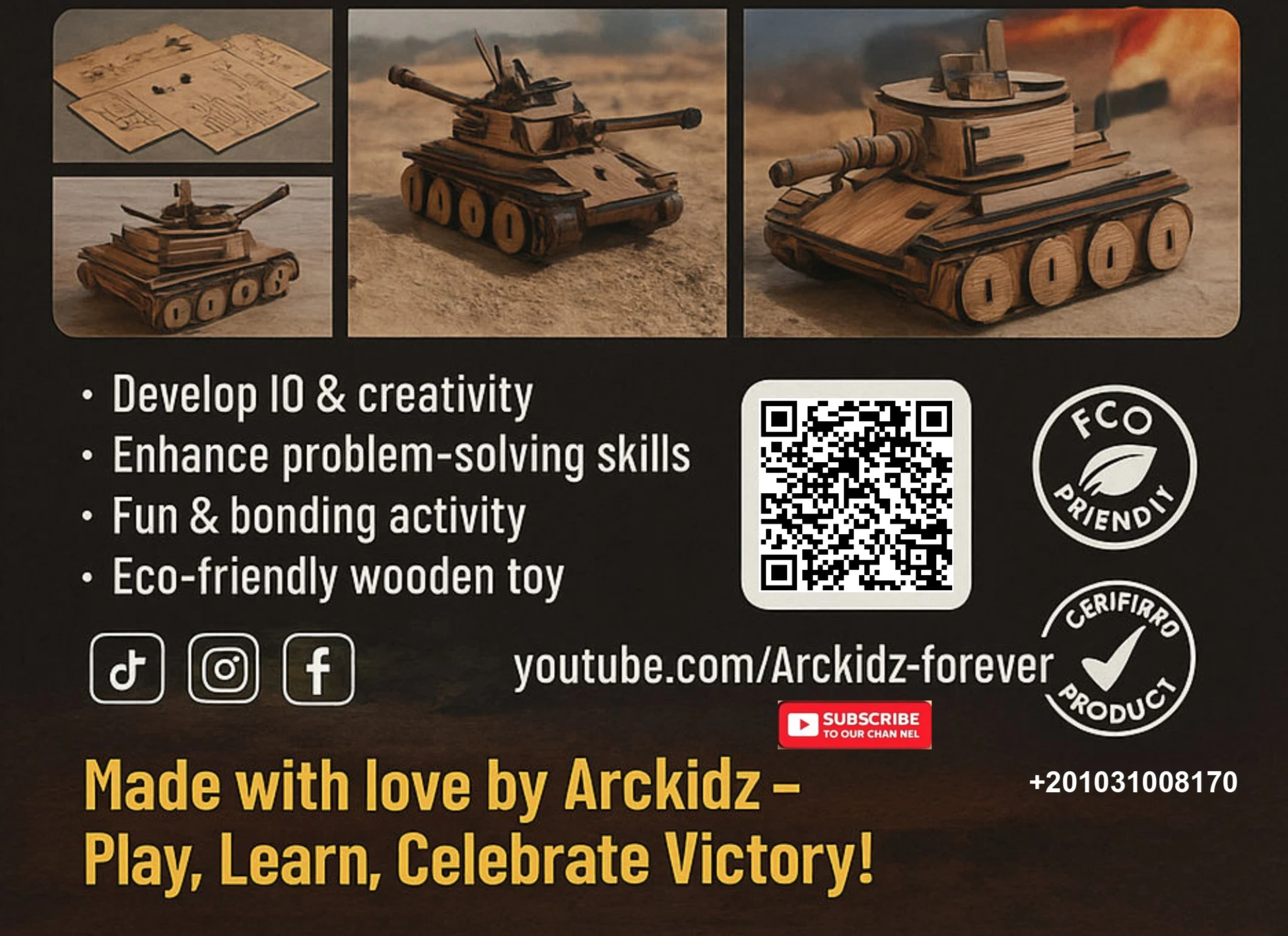 المنتج عبارة عن نموذج دبابة خشبية بتتركب قطعة قطعة لحد ما تتحول لشكل قوي ومفصل.