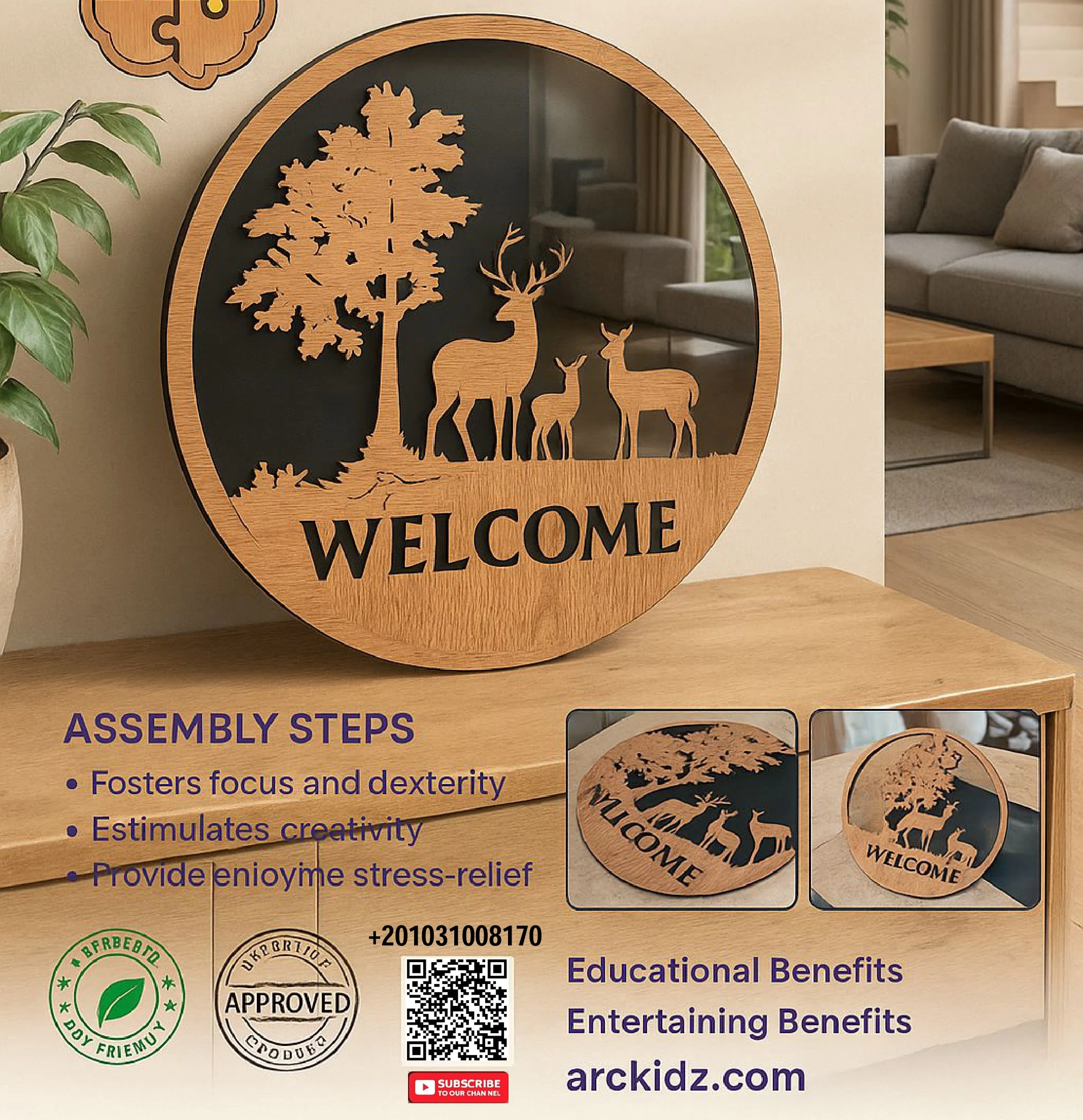 لو بتحب ديكور المنزل الأنيق، يبقى لوحة الترحيب الخشبية من Arckidz هي الاختيار المثالي.