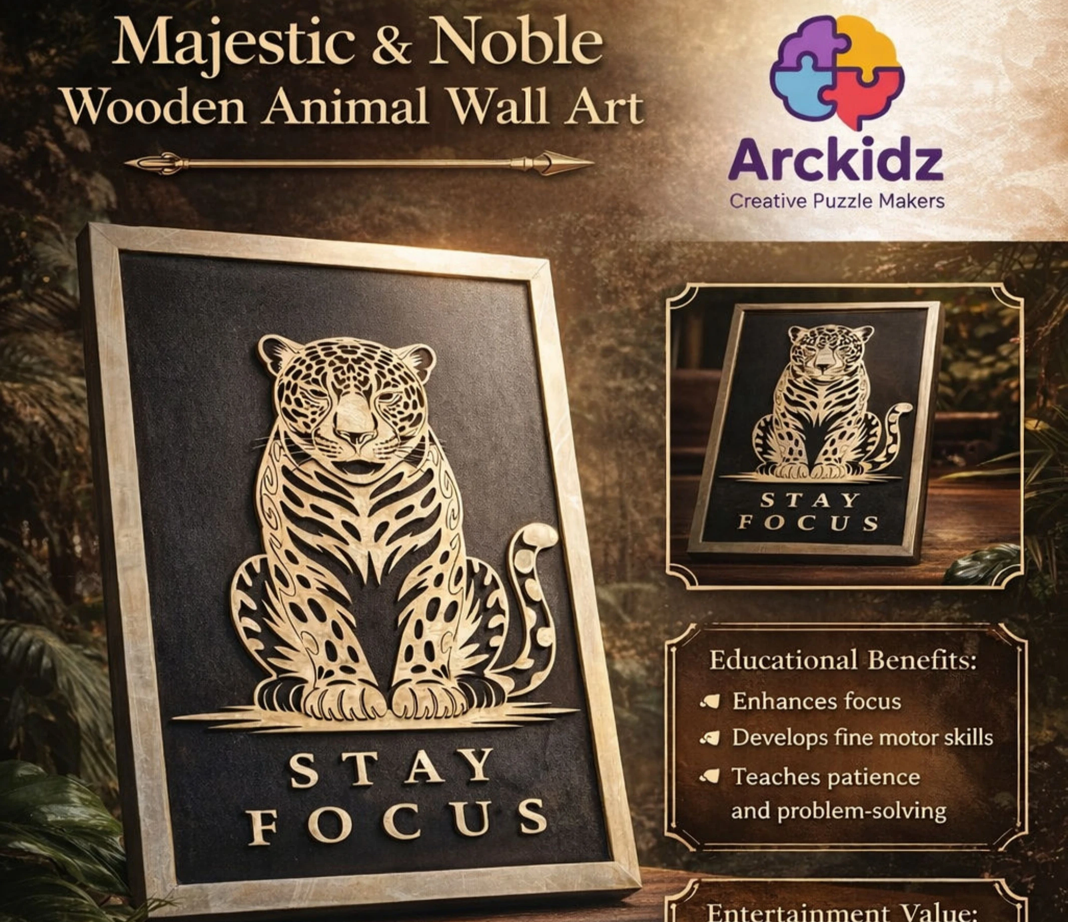 لو بتحب الديكور العصري والبسيط، يبقى لوحة الهندسية الخشبية من Arckidz هي الاختيار المثالي.
