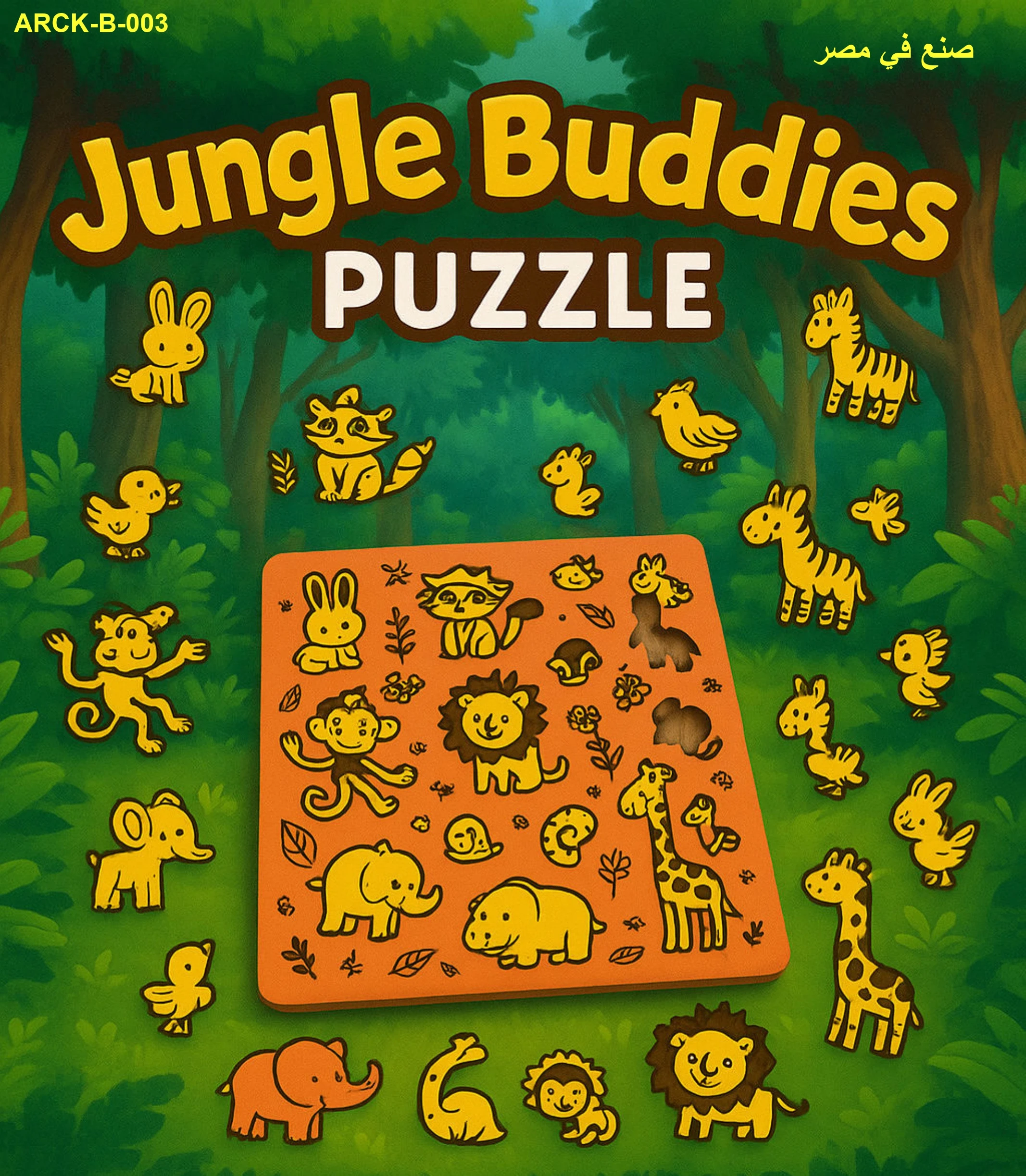 اللعبة عبارة عن بازل خشبي ملون بيساعد الأطفال على التعرف على حيوانات الغابة وتنمية مهاراتهم.