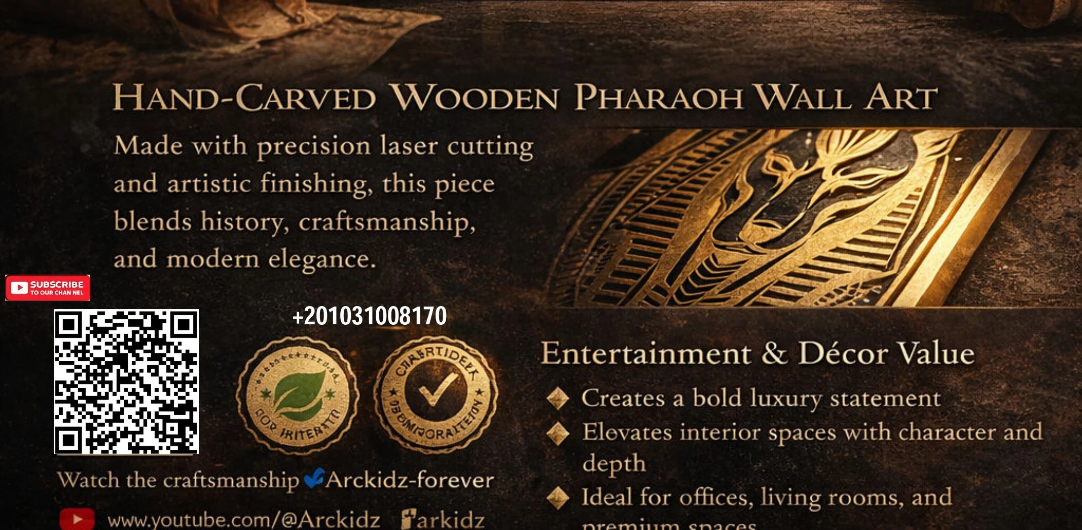 لو بتحب الديكور المستوحى من الحضارة المصرية، يبقى لوحة الفرعون الخشبية من Arckidz هي الاختيار المثالي.