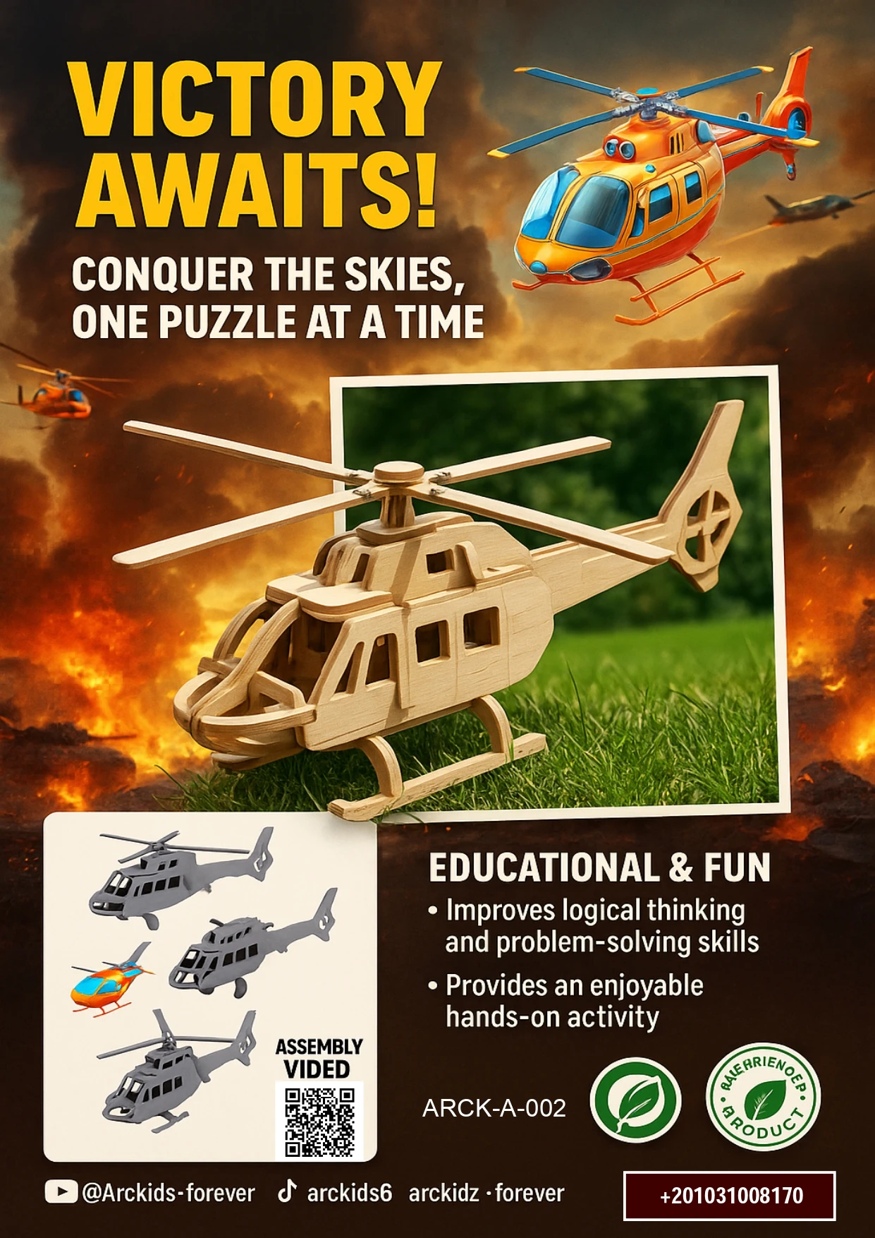 لو بتحب الألعاب اللي فيها تحدي ومتعة، يبقى مروحية البازل الخشبية من Arckidz هي الاختيار المثالي.
