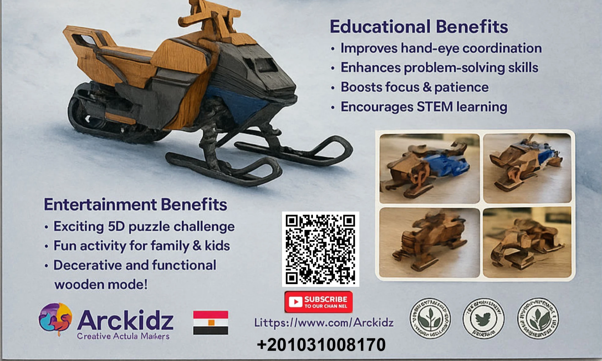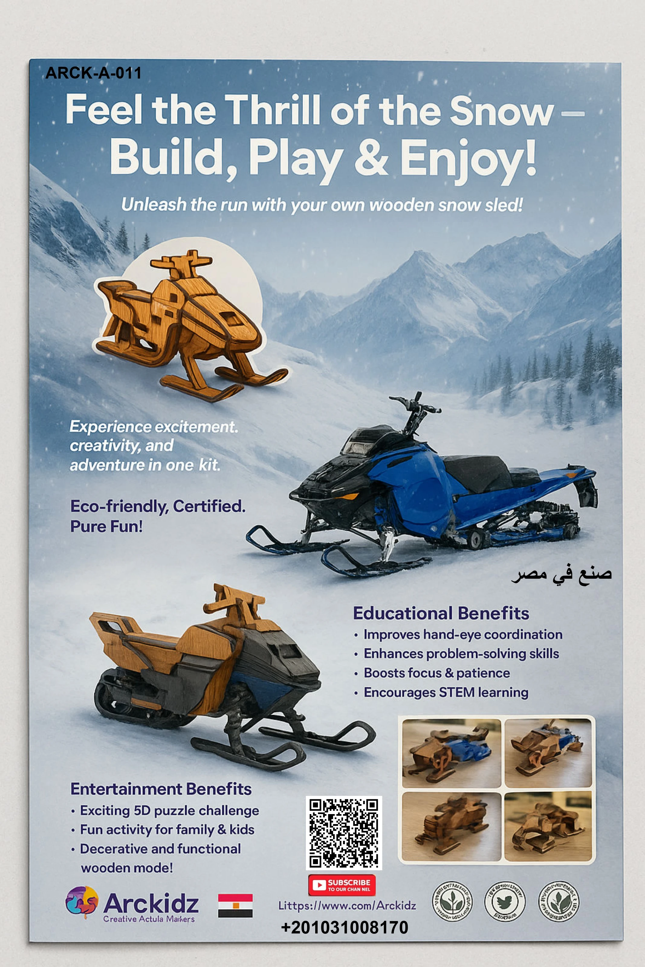 المنتج عبارة عن نموذج سكوتر ثلجي خشبي بتتركب قطعة قطعة لحد ما يتحول لشكل مميز وجذاب.