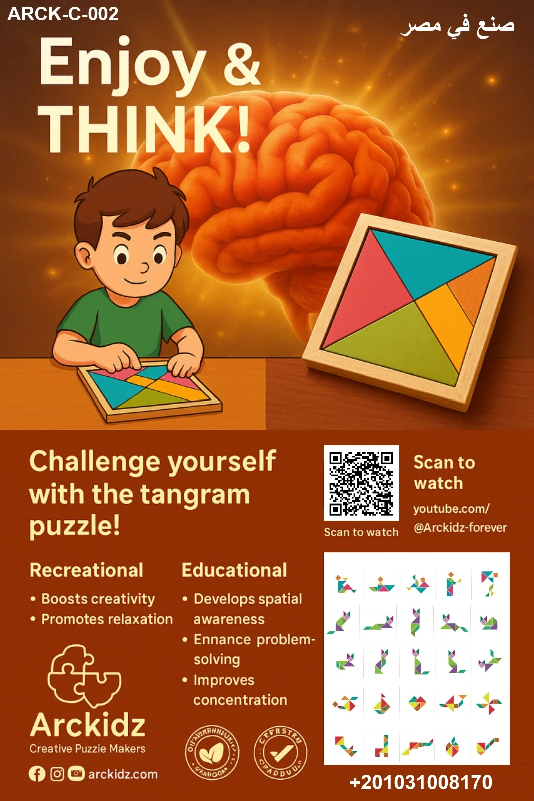 لو بتحب الألعاب الإبداعية والتحديات، يبقى بازل التانجرام الخشبي من Arckidz هو الاختيار المثالي.