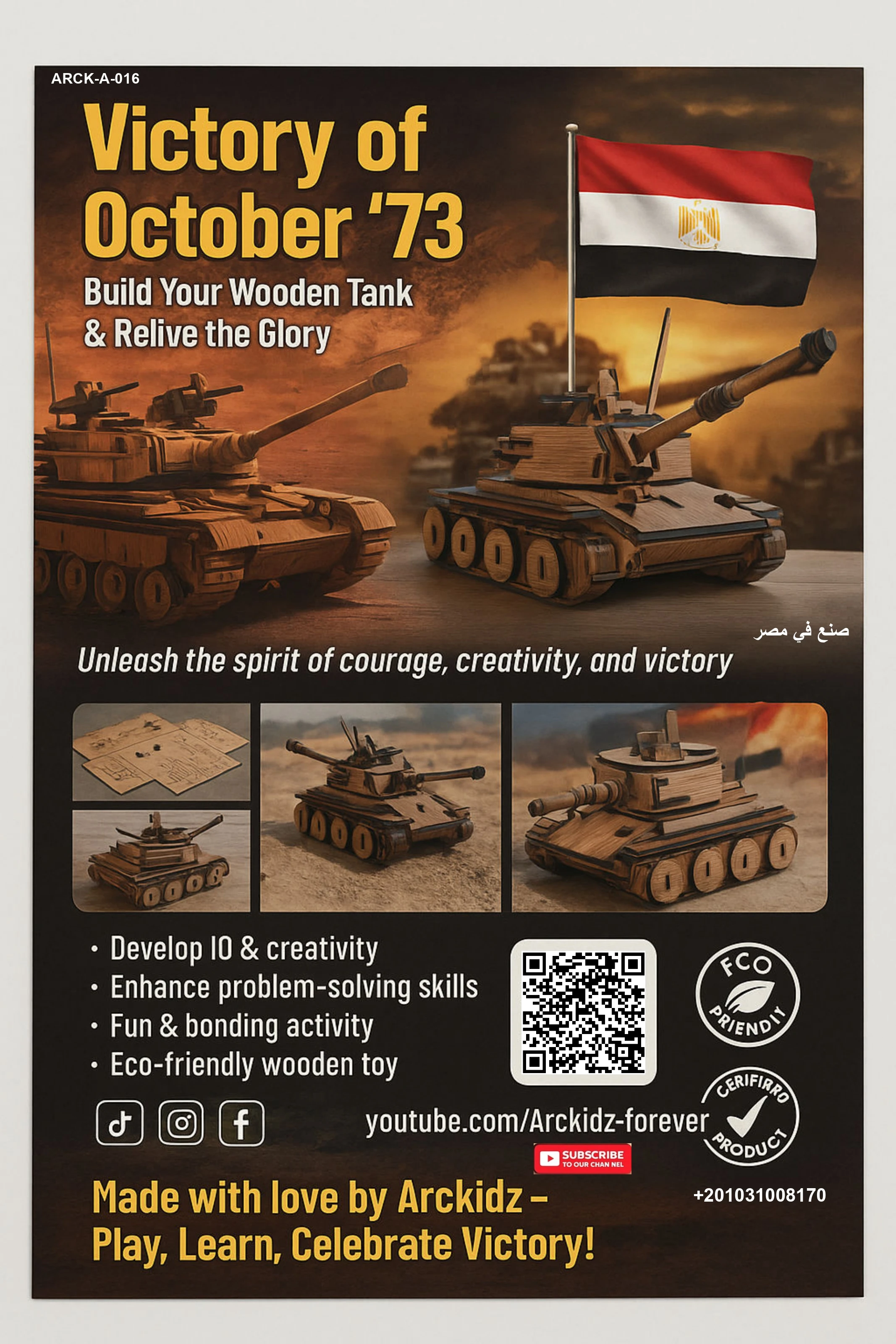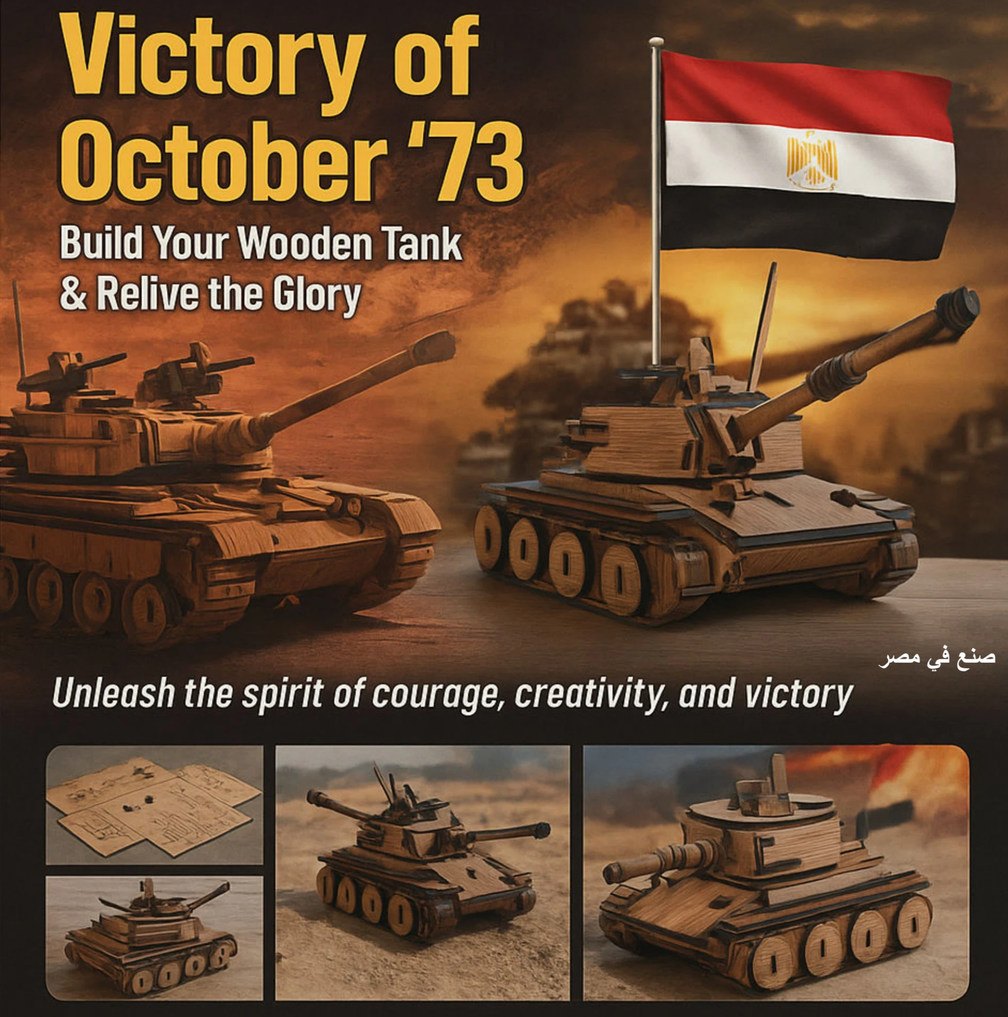 المنتج عبارة عن نموذج دبابة خشبية بتتركب قطعة قطعة لحد ما تتحول لشكل قوي ومفصل.